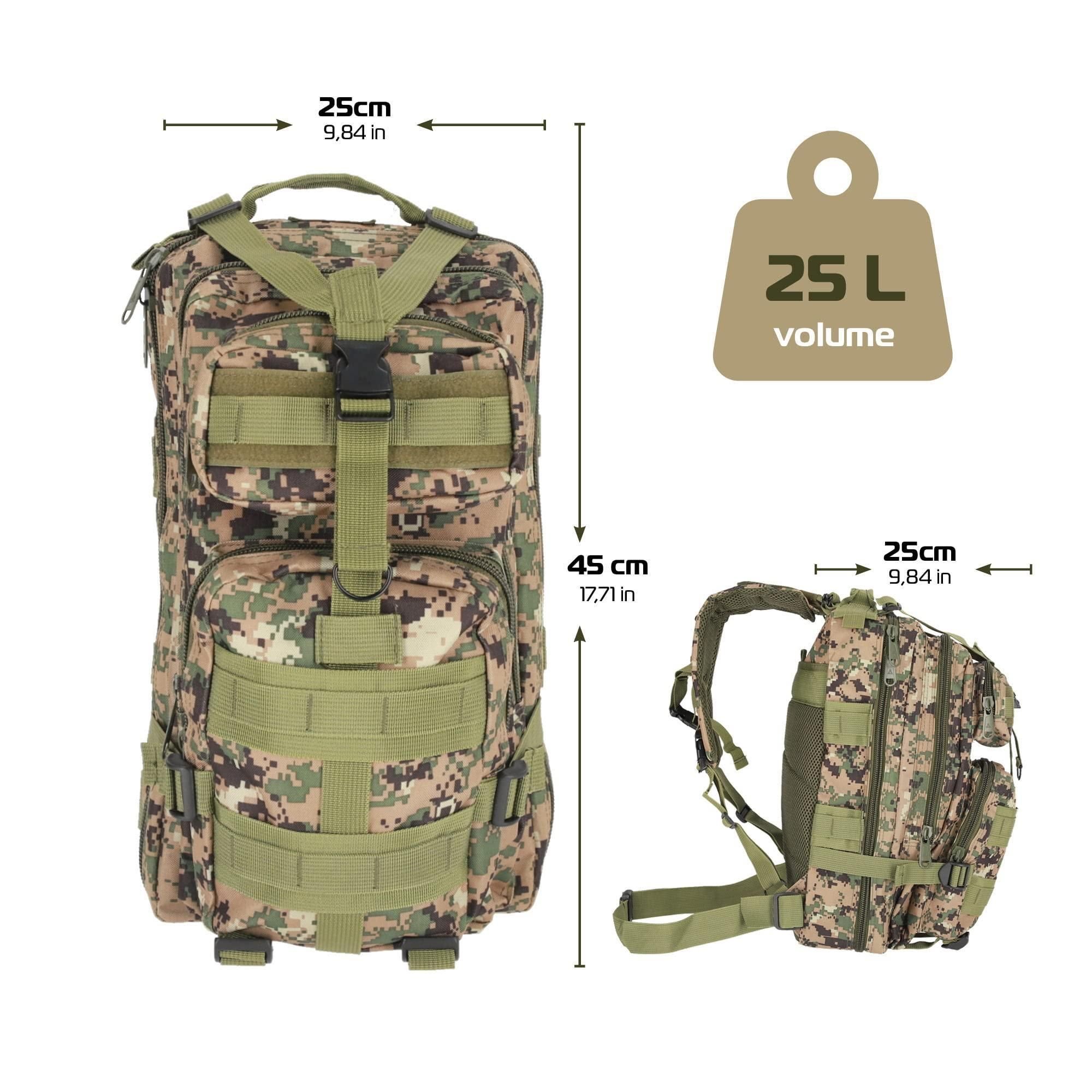 Military Tactical Backpacks Molle System Woodland Color multi-compartment and zippered closure pockets
