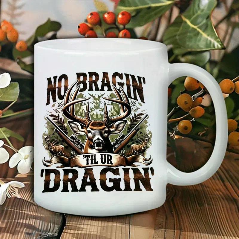 Home > Deer Hunting Ceramic Coffee Mug – Reusable Insulated Cup with "NO DRAGGIN'" Design, Microwave Safe, Hand Wash