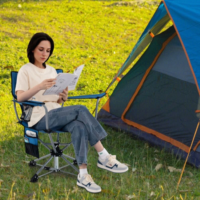 The swivel hunting chair features side pockets to store your small items and keep them within reach.