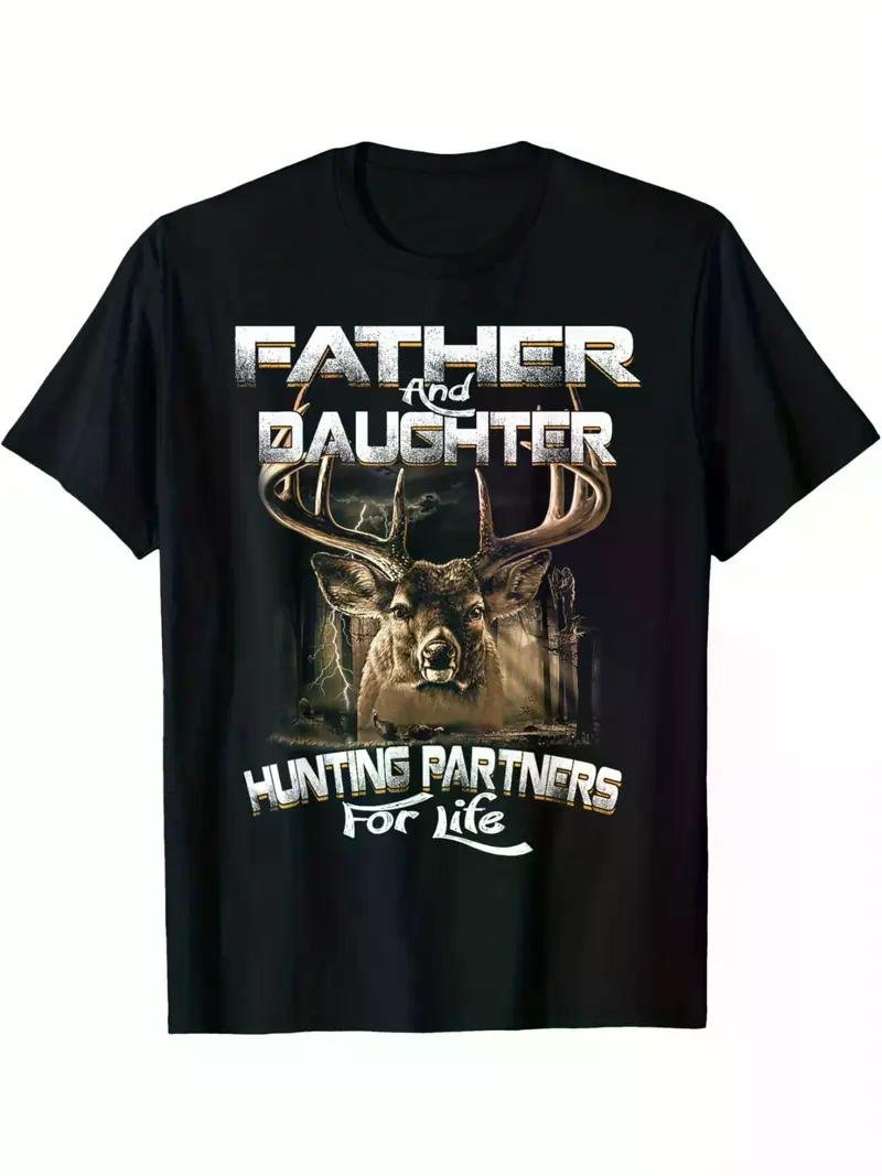 Father and Daughter Hunting Partners for Life Deer Hunter T-Shirt Summer Comfortable Casual Short Sleeve T-Shirt