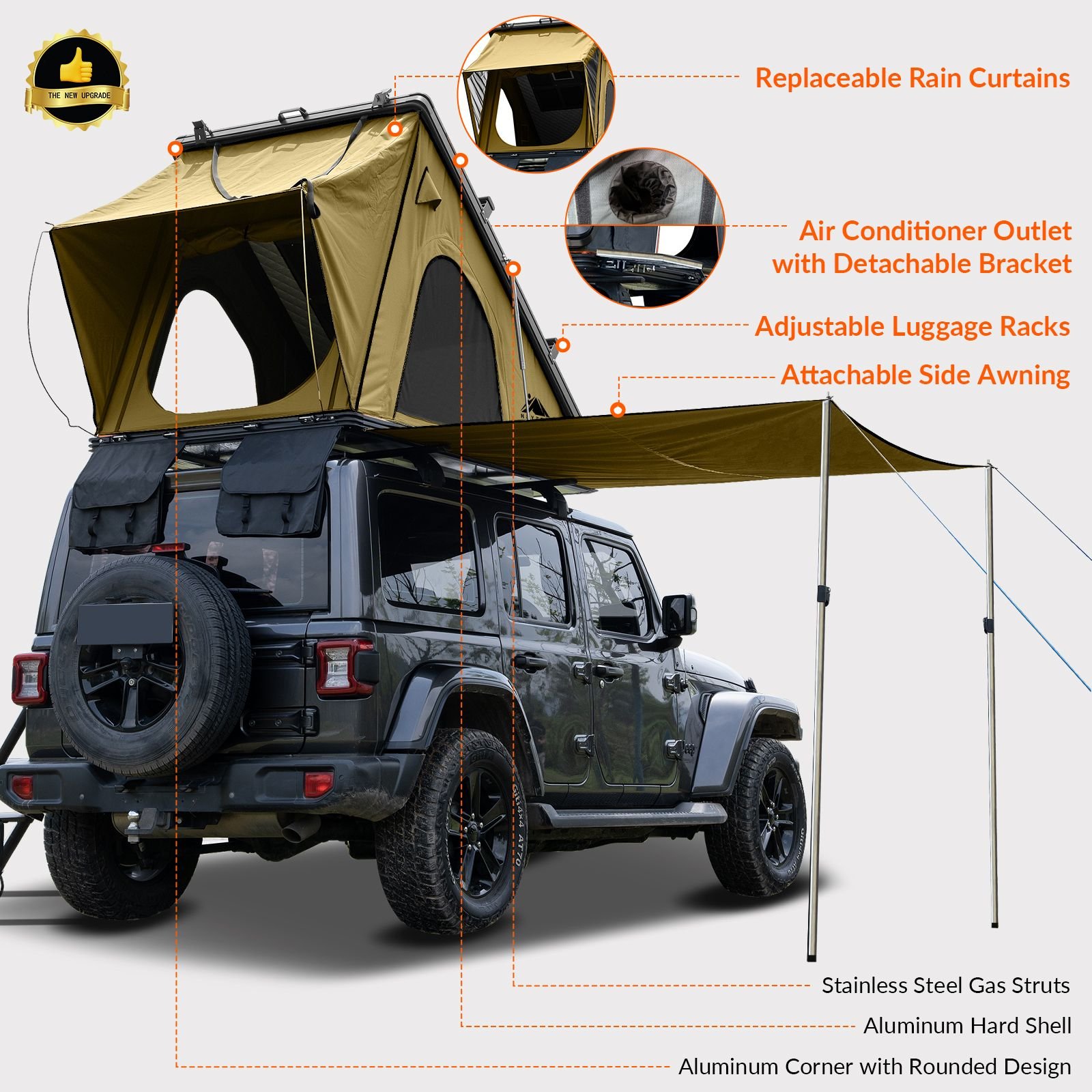 Home > Explorer Plus Rooftop Tent Hardshell with Side Awning, Air Conditioner Outlet with Bracket, Luggage Racks&Replaceable Netting Rain Curtain