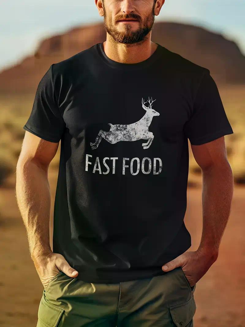 Funny Joke Hunting Shirt - Men's Front Printed Short Sleeve T-Shirt Top - Fast Food Deer - Gifts for Hunters, 1 pc