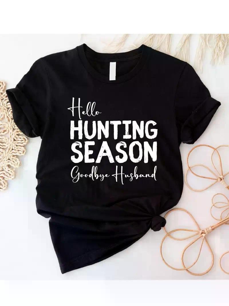 Hello Hunting Season Goodbye Husband T-Shirt ��� Funny & Sarcastic Crewneck Tee for Hunter Wife, Black with White Hello Hunting Season Goodbye Husband T-Shirt ��� Funny & Sarcastic Crewneck Tee for Hunter Wife, Black with White Hello Hunting Season Goodbye Husband T-Shirt ��� Funny & Sarcastic Crewneck Tee for Hunter Wife, Black with White